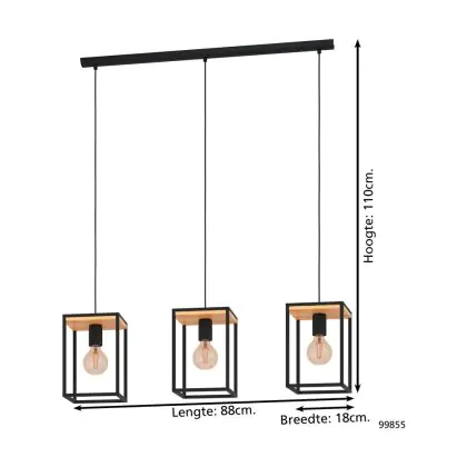 Eglo Pendelleuchte Libertad Stahl Holz Schwarz Braun | IP20 - Geeignet für 3x E27