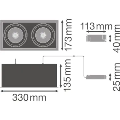 Ledvance LED-Spot Quadrat Multi schwenkbar Schwarz-Weiß 2x30W 5400lm 38D - 840 | Ausschnitt 320x160mm