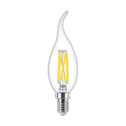 Mehrfachpackung 10x Philips MASTER LED E14 Gebogen-tip Kerze Fadenlampe Klar 3.4W 470lm - 922-927 Dim To Warm | Höchste Farbwiedergabe - Dimmbar - Ersatz Für 40W