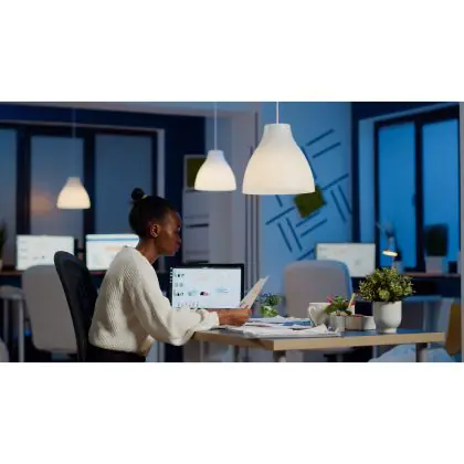 Jede Lichtquelle besitzt eine Energieeffizienzklasse von A bis G. Das Energielabel A gibt an, dass das Produkt besonders effizient ist, G steht für eine geringe Effizienz. LED-Beleuchtung ist die nachhaltigste Beleuchtungstechnik. Selbst wenn eine LED-Lampe mit E oder niedriger eingestuft ist, spart sie immer noch 70 % Energie im Vergleich zu herkömmlicher Beleuchtung. Warum nutzt man dann für LED ein strengeres Einstufungssystem? Das Energielabel wurde 2021 neu aufgesetzt, sodass moderne LED-Produkte in Zukunft noch effizienter und langlebiger auf den Markt gebracht werden können.