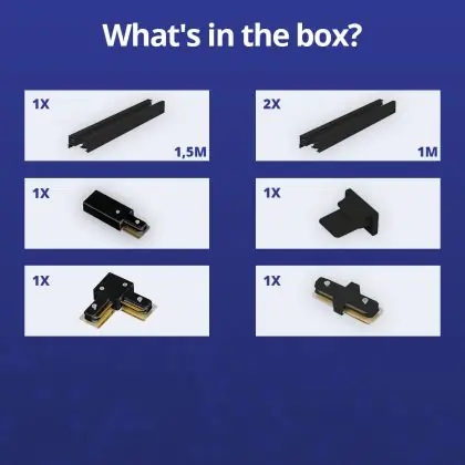 Bright Choice Rail Set Rail Monophasé L 1,5 x 2 Mètre Noir | incl. Embout, Connecteur d’Alimentation et L -Connecteur