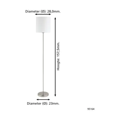 Eglo Lampadaires Salon Pasteri Échantillon Nickel Satiné Blanc | IP20 - Convient pour 1x E27