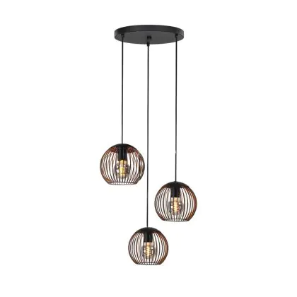 Eglo Suspension Luminaire Almanzora Échantillon Noir Cuivre | IP20 - Convient pour 3x E27