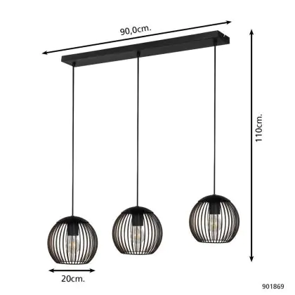 Eglo Suspension Luminaire Almanzora Noir, Cuivre | Convient pour 3x E27
