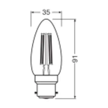 Description Ledvance Classic LED B22 Bougie Filament Claire 3.4W 470lm - 827 Blanc Très Chaud | Remplacement 40W