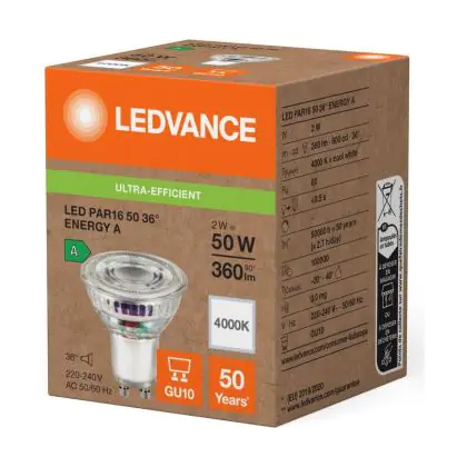 Ledvance LED PAR16 GU10 Réflecteur 2W 360lm 36D - 840 | Remplacement 50W