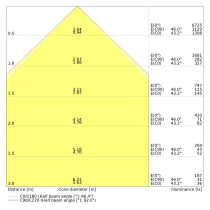 ![]() Le code couleur se compose de l'indice de rendu des couleurs (IRC) et de la température de couleur (Kelvin). Le premier chiffre indique le rendu des couleurs (1 = très mauvais rendu des couleurs, 9 = meilleure authenticité des couleurs). Le deuxième et troisième chiffre indiquent la température de la couleur. Exemple : Le code couleur "830" indique que la lampe a un bon rendu des couleurs (8) et une couleur de lumière blanche chaude (30 = 3000K). |