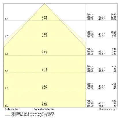 ![]() Le code couleur se compose de l'indice de rendu des couleurs (IRC) et de la température de couleur (Kelvin). Le premier chiffre indique le rendu des couleurs (1 = très mauvais rendu des couleurs, 9 = meilleure authenticité des couleurs). Le deuxième et troisième chiffre indiquent la température de la couleur. Exemple : Le code couleur "830" indique que la lampe a un bon rendu des couleurs (8) et une couleur de lumière blanche chaude (30 = 3000K). |