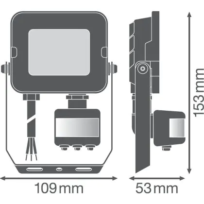 Description Ledvance Projecteur LED Compact Noir 10W 900lm 100D - 830 | IP65 - Symétrique - Détecteur de mouvement et de lumière