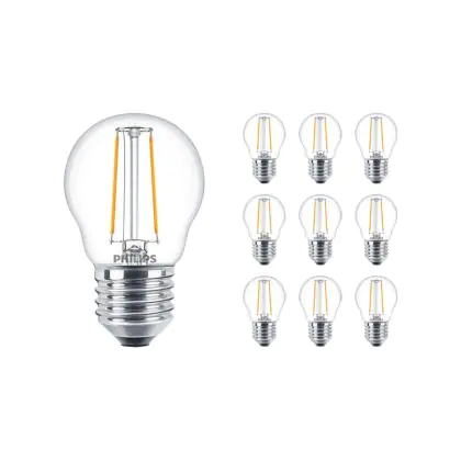 Lot 10x Philips Corepro LED Lustre E27 Boule Filament Claire 2W 250lm - 827 Blanc Très Chaud | Équivalent 25W
