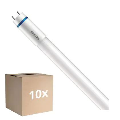 Ce tube LED Lot 10x Philips MASTER LED T8 (EM/Direct 230V) High Output T8 16.7W 2900lm - 830 Blanc Chaud | 150cm - Remplacement 58W est l’un des produits les plus éconergétiques en remplacement des tubes T8 classiques. Avec ce tube LED vous êtes donc assuré de sa qualité. Avec une puissance de seulement 16.7 W, ce tube LED a la même intensité lumineuse qu’un tube classique qui consomme 58 W.