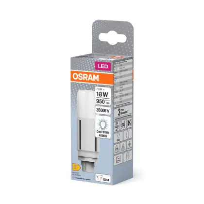 Description Osram Dulux-D LED 7.5W 950lm - 840 Blanc Froid | 2 Broches - Remplacement 18W