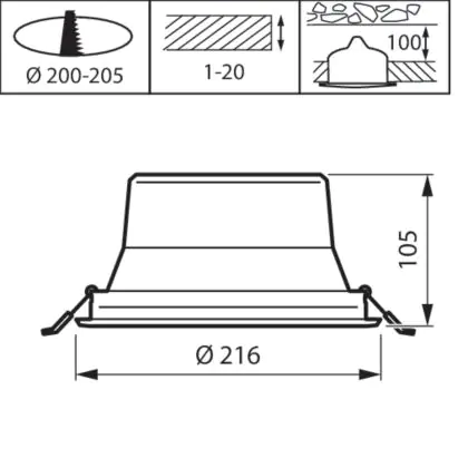 La découpe d'un luminaire diffère des dimensions et fait spécifiquement référence à la taille du trou dans le plafond nécessaire pour fixer solidement la source lumineuse lors de l'installation.